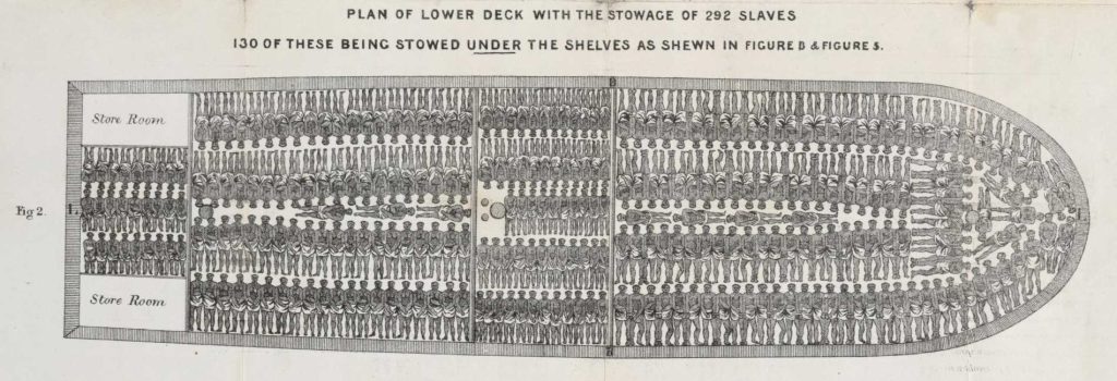 An illustration of the Brookes, a British ship used to traffic enslaved people.