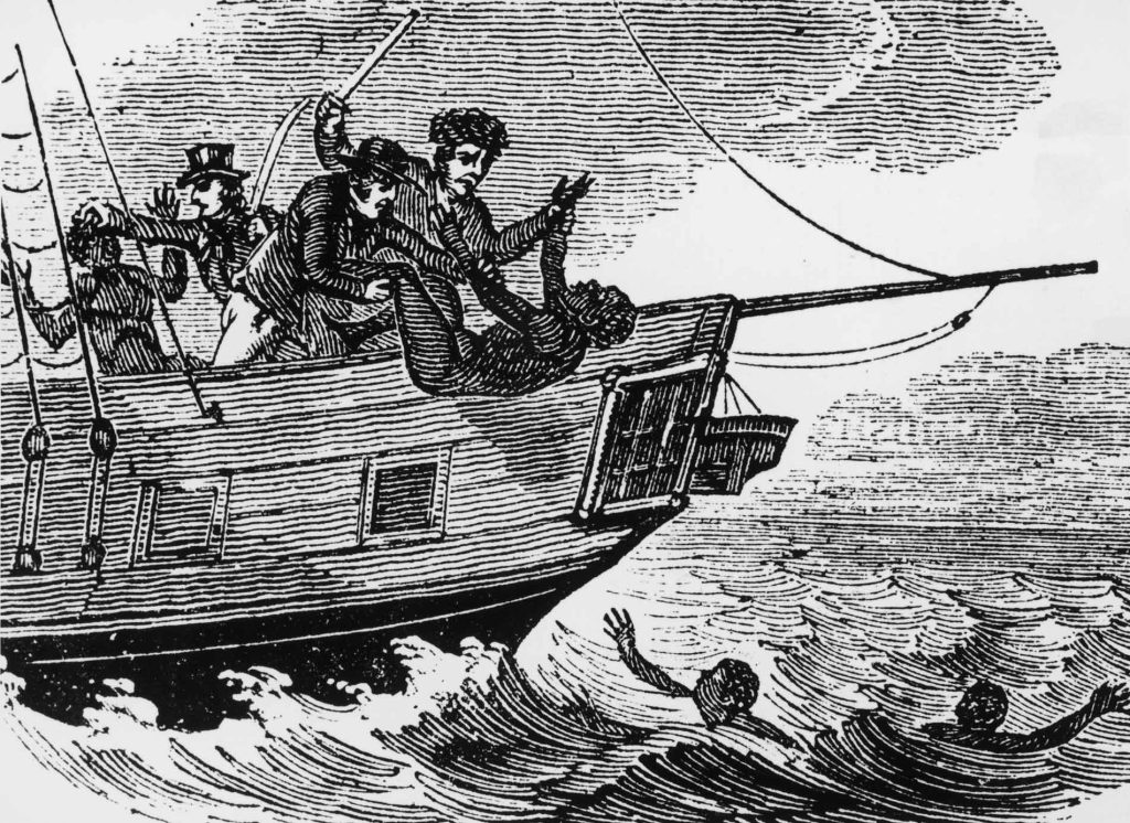 An illustration published in an 1833 anti-slavery periodical shows traffickers throwing enslaved people overboard.